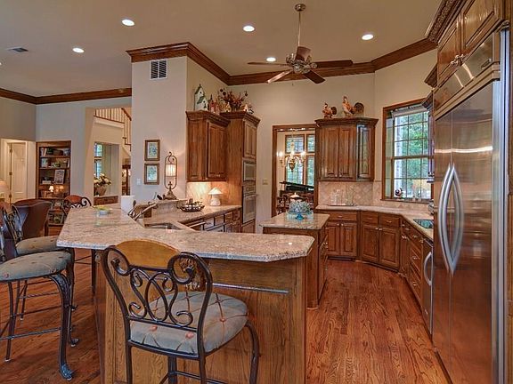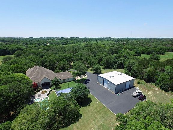Incredible custom built 4 bed 3.2 bath home on 27+- acres just minutes from downtown Weatherford. As people say this estate is all about location. Hardwood flooring, granite countertops, and a beautiful back yard with a heated pool, hot tub, sound system, and basketball court. The kitchen features wood grain cabinets with Architectural Molding, a large walk-in pantry, granite serving bar, and all stainless steel Thermador and Kitchen Aid appliances. 50x50 insulated metal building with three 16 ft overhead doors, 600 sqft apartment, and a separate 8x12 office. This property also features one large pond stocked with fish. Tremendous amount of privacy with large oak trees scattered around the home. Peaster ISD.