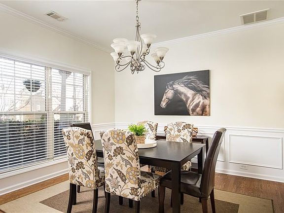 Best price in Thorngate! Stately stone & brick front home in sought after swim/tennis w/rocking chair front porch. Hardwoods on main, spacious kitchen w/large island that opens to breakfast area & family room. New kitchen granite & new carpet upstairs. Freshly painted & upgraded mouldings. Spacious master suite w/trey ceilings, master bath w/double vanity, separate tub/shower, & California walk-in closet. French doors lead to newly stained large deck perfect for entertaining in fully fenced private & serene back yard. Kelly Mill Elem. right across from subdivision!