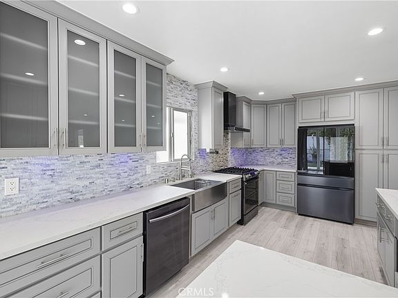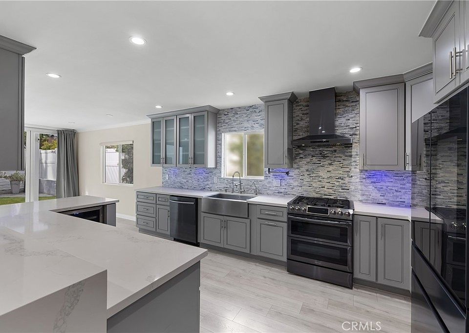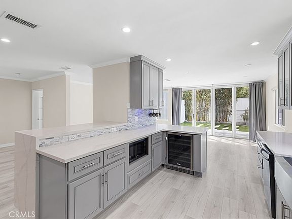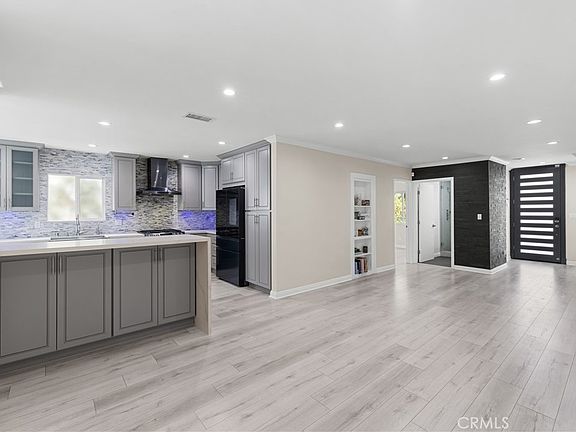 Completely Remodeled 4-bedroom, 3-bath Smart Home designed for modern living and effortless entertaining. Inside, you'll find sleek vinyl floors, a spacious living room, family room, and a remodeled kitchen with a stunning waterfall breakfast/buffet bar, stainless steel appliances, wine fridge, and alkaline water system. The family room flows seamlessly into the yard through tall accordion glass doors perfect for indoor/outdoor dining and gatherings. The primary suite boasts a wall of closets and a spa-like bathroom with dual sinks and a walk-in rain shower. Three additional bedrooms offer flexibility, including a private en-suite in the 4th bedroom. A hidden laundry room tucked behind a bookcase features washer, dryer, and extra storage. Enjoy the low-maintenance yard with a covered deck strung with lights, artificial lawn, BBQ space, and an enclosed side yard for gardening or storage. A separate 154 sq. ft. bonus space is ideal for storage, yoga, or playroom. This eco-friendly home includes solar panels (owner estimates $400/month savings), a full home water filtration system, smart controls for lights and appliances (phone/Alexa enabled), and a security system with cameras. Located near parks with playgrounds, sports fields, and a community center, plus bike paths leading to beautiful Lake Balboa this home blends luxury, convenience, and lifestyle in one perfect package.
