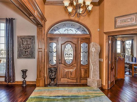 Spectacular home on 5 acres with pond. Dynamic floor plan with 5 bedrooms, 4.5 baths, 3 living, study and 2 dining areas. A true custom with beautiful wood flooring, elaborate trim and solid doors. Beautiful outdoor living with pool and hot tub. Situated close in the property has a full pipe and cable fence with an out building formerly used for horses. Addition covenants provide for two large animals. Long circle drive with oversized 4 car garage.