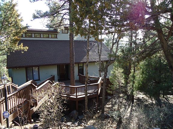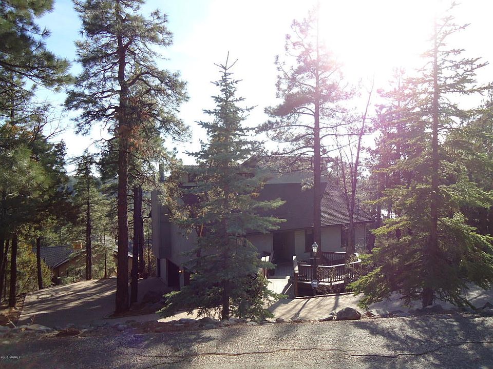 Location and views describe this well maintained cabin located in a prime area of Munds Park. The 3 viewing decks offer beautiful panoramic views of forest, lake, golf course and Sedona Redrocks. Walk into a huge great room with vaulted ceiling, windows with views, rock fireplace and open to the kitchen. Sun room is adjacent to the kitchen with access to the covered deck. Main floor has 2 bedrooms and bath. Master bedroom and bath upstairs with a private covered deck. Downstairs you will find one bedroom,1/2 bath and Laundry. You will also find a game room/office and workshop. Partially fenced area, plus outside storage room. Beautiful paver driveway leads to the 2 car garage. Do not miss previewing this wonderful cabin.