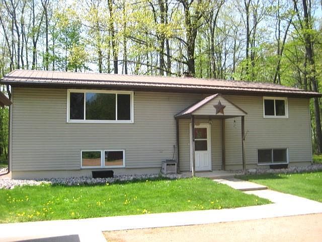 Quiet rural area Southeast of Hatley in the Town of Elderon. On 3.8 acres of wooded privacy with open backyard. Fruit trees, fire pit and 10x16 garden shed. Raised ranch home with around 1994 square feet of finished area. 2 bedrooms on main level, 2 baths - main and lower. Almost finished lower level master suite. Large lower family room. Floor coverings have been removed from intended master suite and family room. Improvements consist of SureDry water system, sump pump with battery back, electronic dehumidifier, furnace, central air, power vent water heater, Culligan water conditioner, plumbing, electrical, mound system and metal roof on home and garage. Detached 32x28 3 car garage/workshop, insulated and finished. LP force air heat, day light windows facing South for plenty of natural light. Home is clean and nice - just buy and move in! You get to put in the lower floor coverings to suit your taste.
