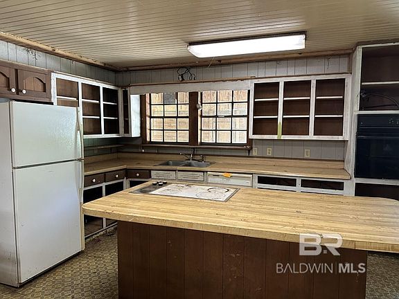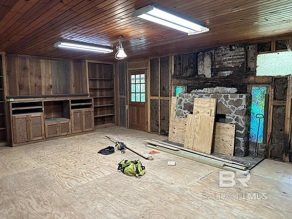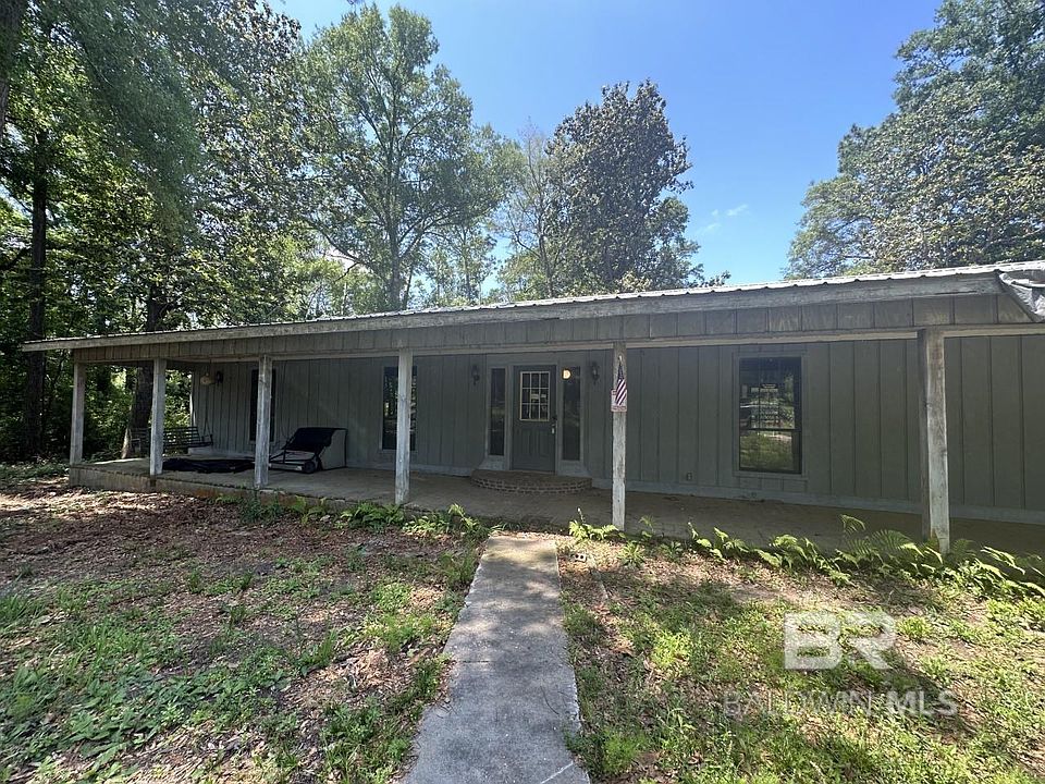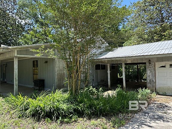 Unique opportunity in old school rural Fairhope. This 1976 custom home lies near Fish River (with non-deeded private access) in the historic Clay City area. The 2.25 acre yard offers plenty of space for outbuildings, boats, RVs etc. The front yard is large enough to put 3 average sized Fairhope lots WITHIN the circle driveway, which is approx. 1200 feet long. Next, this 2050 square foot custom home offers FULL length porches front, rear & side interconnecting with an oversized garage. Recent improvements include a new inside HVAC system, floor joists & sub-floors in living/dining/entry/hall/2 bedrooms. Plumbing &electrical are both in working order as is HVAC. The 1976 wood paneling has been removed and prepped for sheetrock. Existing beadboard ceilings throughout can be painted or restrained. The house had rough cut cedar trim throughout, which has all been stored in the garage for reuse should one desire. Great bones to turn into a nice estate home. 2023 Tax assessor's value $317k.