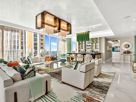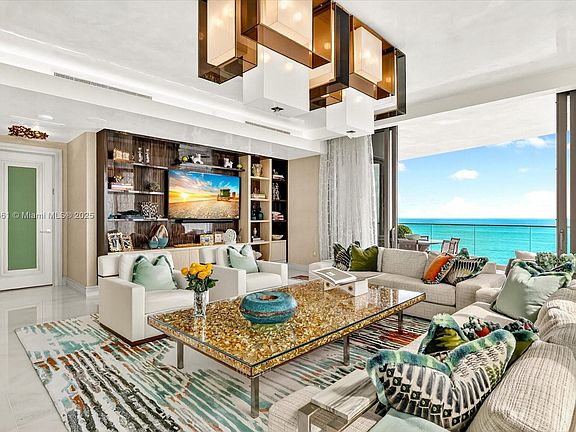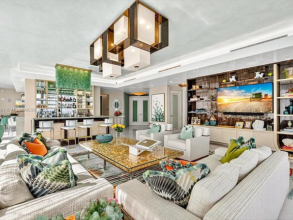 Spectacular south corner residence at The Estates at Acqualina, masterfully designed by the renowned Myron Wolman Designs. From the moment you step off the private elevator, you are transported into a refined tropical oasis. No detail was overlooked—exquisite Venetian plaster ceilings, bespoke wall coverings, custom millwork, designer lighting, curated furniture pieces, and an extraordinary showpiece bar all come together to create a one-of-a-kind atmosphere. This magnificent residence offers the ideal backdrop for sophisticated living and unforgettable entertaining for family and friends. Enjoy the Acqualina Five Star, Five Diamond lifestyle!