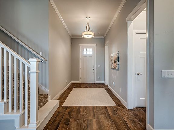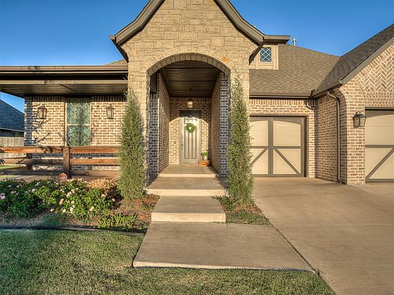 ABSOLUTELY STUNNING! This gorgeous home boasts 4 bedrooms + a study, cul-de-sac lot, 3 car garage, & a storm shelter in the award winning Deer Creek School District & popular addition of the Grove. This home has great curb appeal with its cedar beams & covered front porch which would be perfect to enjoy this active community. A spacious entry showcases the modern lighting, floor to ceiling crown molding, neutral tones, & beautiful wood grain tile flooring that is throughout the main living area. The living room features a beautiful gas log fireplace, oversized windows for tons of natural light, & a stylish built-in entertainment center with accent lighting & shelving. Stainless steel Kitchenaid appliances, gas range & convection oven, island, ceramic farmhouse sink & under cabinet lighting give this kitchen a "wow factor". The kitchen has a TON of storage too from the island, wood wine racks, multiple lazy susans, & a large walk-in pantry under the staircase. Downstairs also includes a private master suite, 2 secondary bedrooms, a Jack n Jill bathroom with dual vanities, spacious study, half bath, & laundry room with mud bench. Upstairs is a 650' bonus room which could be a 4th bedroom/media/game room & includes 2 walk-in closets & a full bath. The backyard has a spacious east facing covered porch with ceiling fan & several raised gardens with vegetables. The Grove offers 2 pools, a splash pad, 2 clubhouses with gyms, parks, basketball court, soccer field, stocked ponds, & miles of walking trails. Home is within walking distance of one of two community pools & gyms.