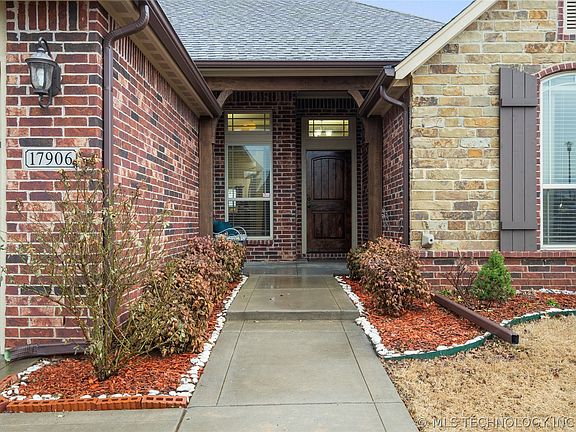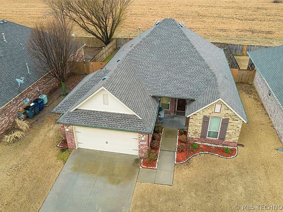 WELCOME HOME! Pristine one-level, split bedroom floor plan with a BRAND NEW ROOF, 10 foot vaulted ceilings, and luxury vinyl plank flooring. Eat-in granite kitchen boasts updated finishes; open to living room. Tile floors in kitchen and bathrooms, wood blinds, ceilings fans. New gutters and leaf guards. Covered back patio with ceiling fan backs to an open field (privately owned land); cable and gas connections ready for your flatscreen and grill! Full privacy fencing. 2.5 car garage with a storage bump out. Floored attic and solar exhaust fan. Neighborhood, pool, pond, and trails. Less than two miles from Hillside Dr / Tulsa Hills Corridor and easy access to Hwy 51/BA Expwy.