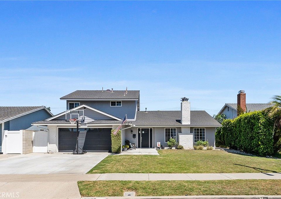 Nestled in a highly sought after neighborhood, this 2-story,4 bedroom (with primary suite on 1st level),interior tract home is located on a LARGE lot nestled on a quiet street & is serviced by Fountain Valley’s top ranked schools. The pleasant curb appeal of this traditional-style home is always inviting. Fully remodeled & move-in ready, it blends classic charm with modern comfort. Entering the residence, there is a nicely sized family room with laminate floors & a cozy brick fireplace that is great for relaxing & entertaining guests. The efficient layout flows into a well-appointed kitchen with a large sitting peninsula with pendant lighting, white shaker style cabinets, grey quartz countertops & subway tile backsplash, stainless steel appliances & dining area with sliding doors to the backyard. The LARGE,PRIVATE & TRANQUIL backyard has a huge grass area, block walls,& a large aluminum patio cover with a TV hook-up, making this a perfect area for family gatherings & BBQ’s, & plenty of room for a pool, garden & kids and pets to play in. Back inside on the first level, the primary suite offers an en-suite ¾ bathroom with plenty of counter space & a glass enclosed step-in shower. Off the family room, there is direct access to the 2-car garage with washer & dryer hookups,& a spacious under staircase storage area. Heading upstairs, three additional generously sized bedrooms have laminate floors & share a full hallway bathroom. Additional highlights include neutral paint throughout, new finishes, light & water fixtures, scraped ceilings & fans in all bedrooms & dining room, newer roof (2015), re-piped with pex & heater(2020),water heater (2024) & central heating. Only steps away, Fulton Middle School, park & playground offer a great space for walking, playing with kids & pets, or simply enjoying the beautiful open space. This interior tract home is close to exceptional/award-winning schools (some of which are accessible from the neighborhood park & greenbelt),a short commute to world-class beaches,& the fine dining, entertainment,& shops at Main St & Pacific City. Nearby local stores include Whole Foods,Target,Kohl's,Smart & Final,Sprouts,Starbucks,Stater Brothers,CVS,& Costco!Additional attractions are Bella Terra,South Coast Plaza,HB Central Park,Library & Senior Center,HB Sports Complex,the Equestrian Center,Meadowlark Golf Course,the OC Fair Grounds & more! Easy access to major freeways & PCH. Experience the best of California coastal living all year round!