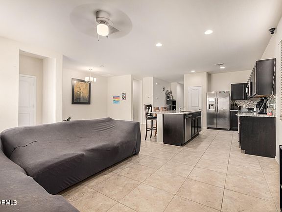 Fall in LOVE with this beautiful 3 bed, 2 bath single-level home in the desirable Sorrento! A 2-car garage and a lovely low-care landscape are just the beginning. Fabulous interior boasts a spacious great room paired with neutral paint, window treatments, sliding doors to the back, and tile floors w/carpet in bedrooms. The open-concept kitchen is a cook's delight! SS appliances, granite counters, mosaic backsplash, a pantry, recessed lighting, Espresso cabinets, and an island w/breakfast bar complete the picture. Master bedroom has with dual sinks & walk-in closet. Enjoy the large backyard offering a covered patio, artificial turf, and pavers for a perfect outdoor living space! Community features a park, splash pad, tennis courts, walking paths, & grassy fields. Truly a MUST-SEE!