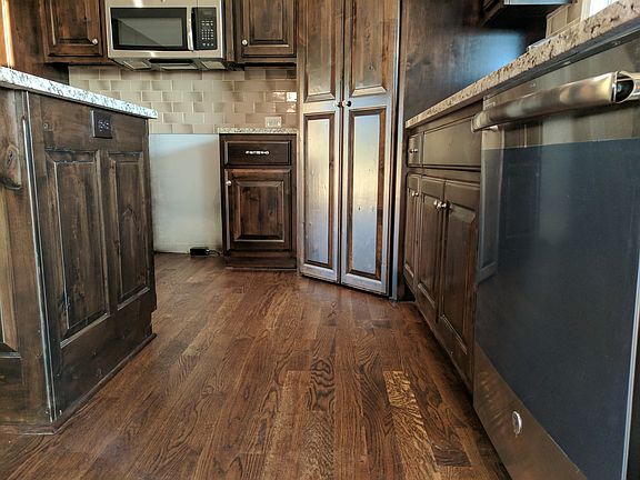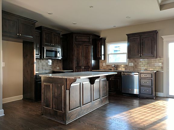 - INTERIOR FEATURES: Pantry, Kitchen Island, Custom Cabinets, Stained Cabinets