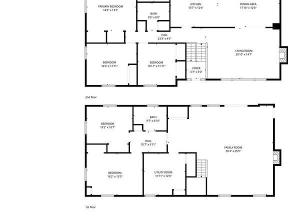 - Room types: Living Room, Dining Room, Primary Bedroom, Bedroom 2, Bedroom 3, Bedroom 4, Bedroom 5, Kitchen, Family Room, Utility Room, Bathroom 2, Bathroom 3, Primary Bathroom