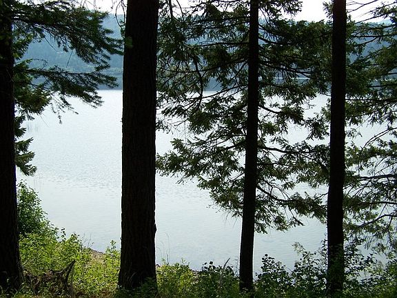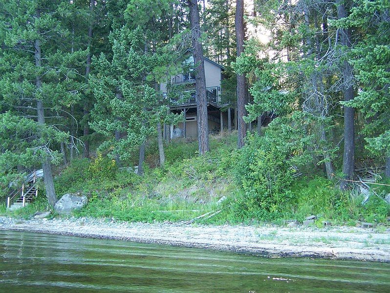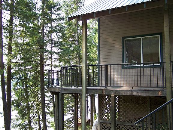 Lake Cocolalla Waterfront home on 1.29 private wooded acres. Over 99 ft of lake frontage . Built in 1952, Remodeled in 1993 w/ 3 Bdrms, 2 Bths. Water view from Kitchen sink and cozy sitting room off kitchen w/ wood stove. Wrap around porch. Big deck off living and dining room overlooking water. Fireplace in living room. Master suite has balcony overlooking water. Storage shed. Good Well. Stairs down to water and old dock needs restoration. Room to build garage or shop. Beautiful forest between paved county road and home adds privacy.