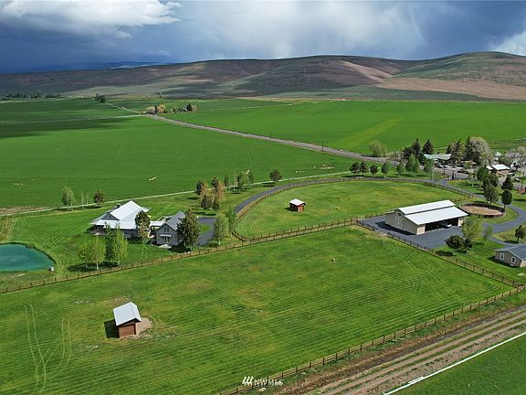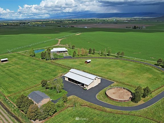 With a combined total of 5,193 sq ft., the ranch encompasses the main house, a 2-story guest home & a caretakers cottage. The barn is 90x50, there are 3 paddocks & a 75' round pen. This NW ranch has soaring ceilings & windows w/views looking out to the scenery from every room. 10" heart pine plank flooring, true custom built cabinetry & built in bookcases adorn the doorways throughout. The primary bedroom suite has a sumptuous bath with breathtaking views at every turn. The great room is anchored by a masonry fireplace & looks out to your own private trout pond with Mt. Rainier framed perfectly beyond. The entire main home has an incredible wrap around porch as well. Exquisite craftsmanship, design and detail make this one of a kind.