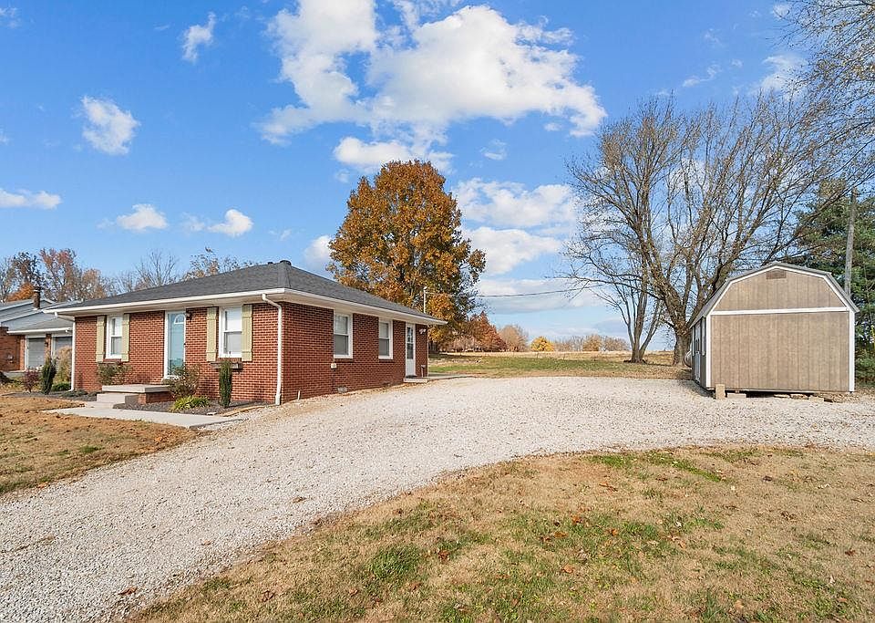 Welcome home to this charming 2 bedroom, 1 bathroom home sitting on a beautiful ½ acre lot in desirable East Daviess County. Inside, you’ll love the open-concept kitchen and living area—perfect for everyday living and entertaining. Step outside and enjoy peaceful views from the wooden deck, concrete patio, or the cozy stone fire pit area. The detached building is a dream space for projects and storage, complete with built-in work benches and plenty of room for lawn equipment or hobbies. This home has been thoughtfully updated with: • New landscaping (2024) • New hot water heater (2021) • New dishwasher (2023) • New washer & dryer (2025) You’ll feel tucked away in a quiet, secluded area while still being close to everything—less than 15 minutes to the downtown Owensboro riverfront and only 5 minutes to the new Owensboro Racing & Gaming Casino. A wonderful opportunity to own a well-maintained home in an excellent East Daviess County location.