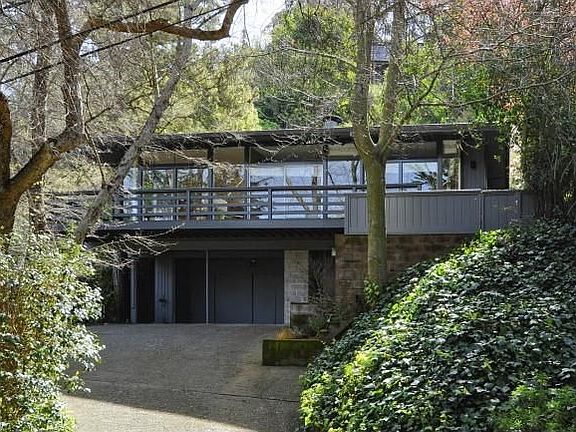 Perched above the street in a magnificent, lush & serene setting is this pristine 3 bedroom, 3 bath mid-century retreat. It has a stunning open living and dining room with a raised hearth fireplace, walls of glass and wrap around decks, which extend the indoors outwards. At the rear is a large, beautifully terraced backyard, with pathways and observation decks up to a zen-like cottage and beyond. What a perfect spot to sit, dream and write poetry! The trees and bushes provide a wonderful screen that allow both the house and yard to feel very private. The termite report is zero. Minutes from the village of Montclair and close to the Montclair Swim Club, it has easy access to the Warren freeway (13), Rockridge and other parts of Oakland, San Francisco, as well as Highway 24 to Orinda, Lafayette, Moraga, Walnut Creek and other parts of Contra Costa County. Close proximity to Chabot Space and Science Center and numerous parks.
