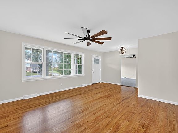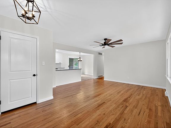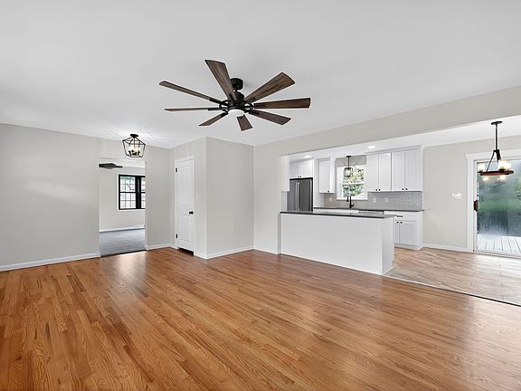 Welcome Home to Modern Comfort & Timeless Charm! Located in a desirable and well-established community, this beautifully renovated Rancher offers the perfect blend of modern style and classic character. From the moment you arrive, you’ll feel right at home. Featuring an oversized driveway, a charming front porch, and an inviting red front door that sets the tone for what’s inside. Step through the door and you are greeted by stunning oak hardwood floors, modern light fixtures, and farmhouse-inspired design accents throughout. The spacious living room flows seamlessly into the open-concept eat-in kitchen, featuring ceramic tile flooring, new white shaker cabinets, quartz countertops, ceramic tile backsplash, recessed lighting, and stainless steel appliances, a true chef’s delight! Down the hall, you’ll find a beautifully updated full bathroom and three generous bedrooms, including a primary suite with its own private powder room. An additional great room/den provides the perfect space for entertaining, relaxing, or a home office setup. The partially finished basement offers even more living space along with ample storage. Step outside through the sliding glass doors to a spacious wood deck overlooking a lovely backyard, ideal for outdoor dining, gatherings, or simply unwinding. This move-in ready home offers easy single-level living in a sought after neighborhood. Modern updates, thoughtful design, and unbeatable value. Contact us today to schedule your private VIP tour!