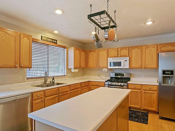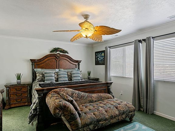 Fantastic location with the largest floor plan in beautiful Oakridge Park. All six bedrooms have walk in closets and crown molding throughout home. Stainless steel appliances, gas range, 2 fireplaces. Washer and dryer hook-ups upstairs and downstairs. Stamped concrete patio with gas barbecue grill. Large extended RV pad with enough room to park boats, trailers, and all your toys. Concrete pad ready and wired for a hot tub. 12x16 storage shed, 4X8 garden shed. Easy access to the freeway.
