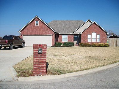 New to the market, this home is only 7 years old. Wonderful yard has sod and sprinkler system, storage shed, concrete patio across back of house, covered storage on East side of house and trees. A must see, the kitchen has black appliances and all stay, a breakfast bar, breakfast room, formal dining room, living room with wood floor, huge master bedroom with walk in closet, trayed ceiling and large master bath includes jetted tub and separate shower. The floor plan is split on this one with two spacious bedrooms divided by full bath opposite end of house from the master bedroom. This home is maintenance free, all electric with average bill of $148.00. The back yard is fenced for privacy and home is located in cudelsac with no through traffic. Don't wait!! Come look with Marsha 208-4056