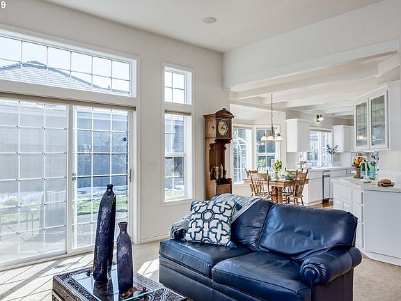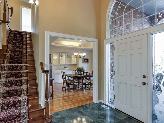 In a sought after neighborhood, this lovely home has an abundance of natural light brought in by the variety of windows. Tons of upgrades: 2-Story foyer, built-in lit cabinets, lit tray ceilings in the dining & living room, French doors opening To 10 Ft ceiling, family room, gourmet kitchen w/beamed ceiling, wet bar, and storage galore. First floor Master suite includes heated flooring in bath, walk-in closet and beautiful sun porch.