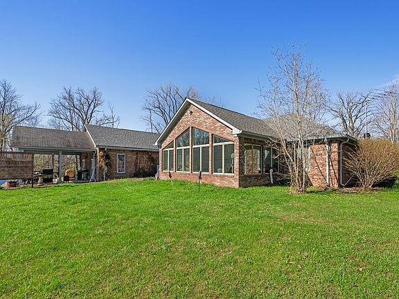 This Sprawling 3 bedroom ranch situated on 5 acres with NO HOA is ready for you to call home. This all brick house features a sunroom right off the master suite. The large private yard has an inground pool and extra large detached garage. New roof and solar panels added in 2021.