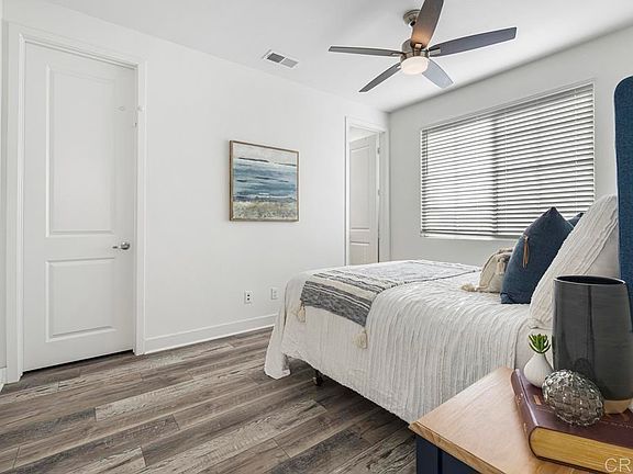 Aventine in Montecito Village combines luxury and spacious living. This 4-bedroom, 3.5 bath home features a first-floor bedroom with an en suite bath. The kitchen is perfect for entertaining with a large island, quartz counters, custom lighting, wine fridge, and walk-in pantry. The living room opens to a private side yard through dual glass doors. The versatile loft can be used as a play area or entertainment room and has linen cabinet storage. The second-floor laundry room has a spacious sink for ease. The home is close to restaurants, shopping, top schools, and the 125 Freeway, and a short walk from the soon-to-open Grove Park. Residents also have access to Montecito Clubhouse amenities such as pools, tennis courts, basketball court, bocce ball, and a fitness center. Come see why this home will make you fall in love at first sight!
