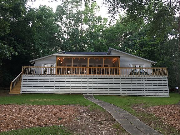 Beautiful lake views with max dock. Main house plus a Guest house. The main house has 3 bedrooms and 2 bathrooms, along with a bunk room that has 2 sets of Full custom built-in bunk beds. The bunk room also has a theatre projector for movies, video games, and live sports. In addition to the main house, the separate guest house has a bedroom with a queen bed, bunk beds, and a crib, along with a 3/4 bath (shower only), a kitchenette, and a living area which presently has another king bed. That is 11 beds total between the 2 houses! The guesthouse also features a 2/3 garage that stores a golf cart, lake toys, and a workshop area. Total interior renovation in 2016 with new HVAC, floors, countertops and appliances. New dock and seawall in 2013, new roof in 2015, new septic system in 2018.