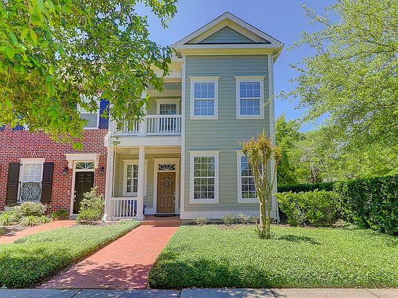 This is the cutest neighborhood with an authentic Charleston feel! And this house fits right in with its double front porches and haint blue porch ceilings! A bright & cheery end unit with extra windows throughout the side of the house. Wonderful open floor plan with great features such as 2 sets of french doors in the LR with transom windows, archways, two tray ceilings, Generous crown & wall molding, 6' solid wood doors on main level. HVAC is 2 years new & freshly painted inside & out! New carpet upstairs as well. Adorable courtyard with fresh landscaping & a 2 car detached garage. Lots of landscaping & a huge tree next to your private courtyard, all taken care of by HOA! Seller to give 8K to buyer for any updates they'd like, however this house is move in ready and clean as a whistle! *** Taxes are higher because this is not the seller's primary residence. If you are buying this home as a primary home, your taxes will be a lot lower!! Park West is a wonderful neighborhood close to everything. Lots of amenities such as pool, tennis, miles of pathways, sidewalks, ponds and a clubhouse. Schools are in the neighborhood and new library is around the corner. Termite bond is included in HOA as well a the roof, landscaping and exterior paint.