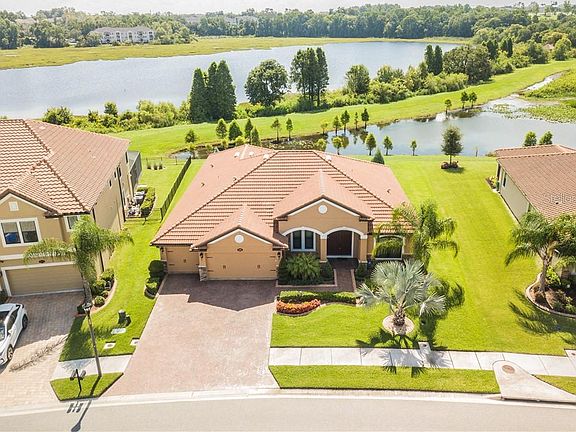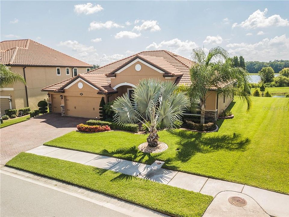 Elegance abounds in this custom K.Hovnanian TRUE 4 bedrooms (Triple split) and 3 baths PLUS DEN/OFFICE home that tastefully combines the luxury of modern elegance with a touch of traditional beauty. From the moment you drive onto your pavered driveway and see your OVERSIZED 3 car garage and the luxurious tile roof, youâll be wowâd. The landscaping is the envy of the neighborhood, with smart plant choices in both the front and backyard including Arizona cypress trees! UPGRADES GALORE including 18 x 18 tile throughout the entire home, ultraviolet air filtration system, brand new gutters, brand new outside paint, alkaline system water softener with filtration, and much more. This floor plan will captivate you! When you walk in, youâre greeted by the formal living room and dining room. To the right, your master suite is immense and accommodates even the largest of furniture! The master en-suite has individual vanities, separate shower, and garden tub. Did we mention the HUGE dressing area/closet (could be its own bedroom)? Itâs a must see! Your new kitchen will entice you to cook for the entire neighborhood! Cherry wood cabinets upgraded to slow close and draped in high tier granite. Your new pantry has extra shelving for all your goodies, the stainless steel appliances include over the range microwave and convection oven! The kitchen also features a beautiful breakfast nook overlooking the water! Your family room is adjacent to the kitchen, perfect for gatherings, and boasts a custom stone wall. The second bath is already ready for a pool! The two additional bedrooms are generously sized with large closets. One of the bedrooms has a Jack and Jill bath leading you to the office/den. Your new laundry and mudroom has lots of extra custom cabinets as well as an interior laundry sink and tile back-splash! Your screened patio overlooks Meadow View Lake and a large retention pond for views unmatched by any other lot in the community! This is a premium lot with premium views within walking distance of the community amenities. TERRA LARGO is resort style living with exceptional amenities including clubhouse, fitness center, community pool, covered playground, basketball court, tennis courts, and gazebo overlooking Meadow View Lake. Call now for details!
