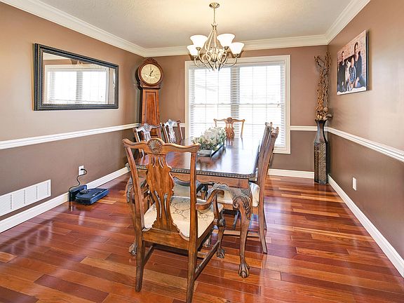 This beautiful one owner immaculate WALKOUT RANCH with 3100sqft of finished living space, an open floor plan and split bedroom design rests on private 1+ acre lot in prestigious Woodridge Estates and has over $27,000 in recent updates (see list). This like new home is finer than any new construction and is $50,000 less! Step into the large entry foyer with 12' ceiling and Brazilian cherry hardwood floors which leads to the vaulted Great room with wood burning fireplace, and the formal Dining room with crown molding and chair rail. The gourmet kitchen offers granite countertops, tile backsplash, GE profile convection oven and breakfast bar that seats 2. The dining /breakfast room opens to the large back deck and gorgeous private views. A large laundry room has room for storage and convenient garage access. The Master suite features Brazilian pecan hardwood floor, ceiling and crown molding along with a private master bath that has a double vanity, jetted tub, marble floors, step-in shower and spacious double rack closet. Completing the first floor are two additional bedrooms that are flooded with light and a full bath with ceramic tile floor. Step downstairs to enjoy the fully finished walkout lower level with crown molding throughout. The Family room has a gas log fireplace, brand new carpet, and atrium door to the spacious private patio. A SECOND FULL KITCHEN features maple cabinets, granite counter-tops and 16" porcelain tile floors which makes for a GREAT IN-LAW/TEEN SUITE. A possible 4TH BEDROOM/office with walk-in closet, full bath and large media room as well as storage and even a TRACTOR GARAGE finish the lower level. Enjoy the private, flat 1 acre yard, an 80 gallon water heater, over $27,000 in recent updates, Aprilaire air cleaner, sump pump, one year home warranty and award winning Oldham County schools (Locust Grove Elem., OCMS & OCHS)