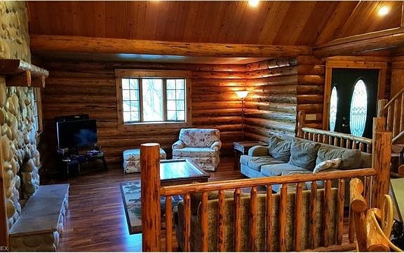 This Charming Rustic 2760 Sq Ft Home Built By Walnut Valley Log w/Hand Pealed Montana Logs Features An Open Concept. Relax And Enjoy A Tranquil Setting In This Quality Handcrafted Log Cabin With Panaramic Views From The Wrap Around Deck/Covered Front Porch Includes Heated Pool. This 5 Acre Lot Includes Part Wooded And Open Area With Fenced Pasture/Small Barn That Would Make A Nice Mini Farm And Previously Housed Two Horses. The Barn Has Its Own Water Source And A Creek Runs Through The Property As Well. The Inviting Great Room Boasts A Floor To Ceiling Stone Gas Fireplace And Catherdral Ceiling With Exposed Log Beams/Interior Log Walls Through Out. The Eat In Kitchen Has Newer Stainless Appliances Along With Plenty Of Counter Space/Large Bar With Stools Leads To Outside Deck Perfect For Family Cook Outs. First Floor Laundry/Mudroom. Two Sizeable Bedrooms On The First Floor And Full Bathroom. Second Level Includes Large Master Bedroom And Full Bathroom. Finished Walk Out Lower Level With Family/Media Room Has Wood Burning Stove That Heats The House Nicely And Patio Doors For Much Natural Lighting. Office Or 4th Bedroom And Storage Room. Attached Two Car Garage With Storage Area. Roof Is Only 2 Years Old. Conveniently Located Just Minutes From I77 And Dining/Shopping.