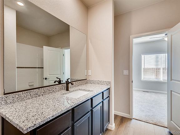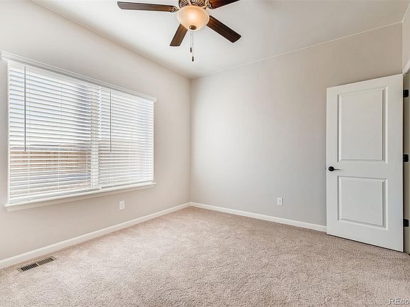 This incredible, new-construction home is located in Second Creek Farm, a beautiful neighborhood in Commerce City. This one-story home features a stylish and functional layout with three bedrooms, two bathrooms and an open-concept entertaining area. The chef-ready kitchen with its sprawling quartz breakfast bar, 42-inch wood cabinets and stainless steel appliances create a stylish and functional hub for this home. The kitchen opens to the dining room and family room, which features backyard access. This home comes with incredible upgrades included at no extra cost, such as a sprinkler system, Wi-Fi-enabled garage door opener, programmable thermostat and more.