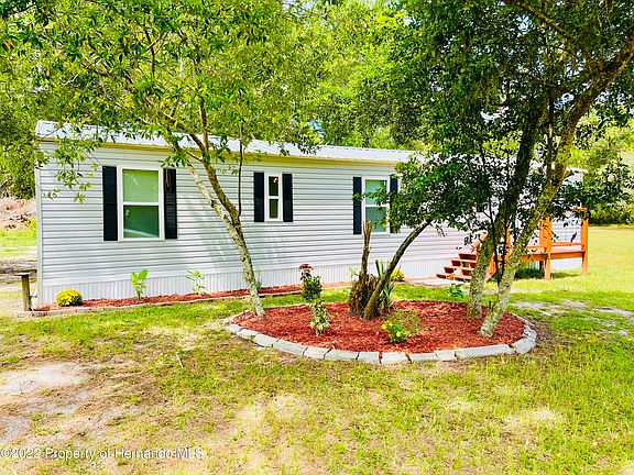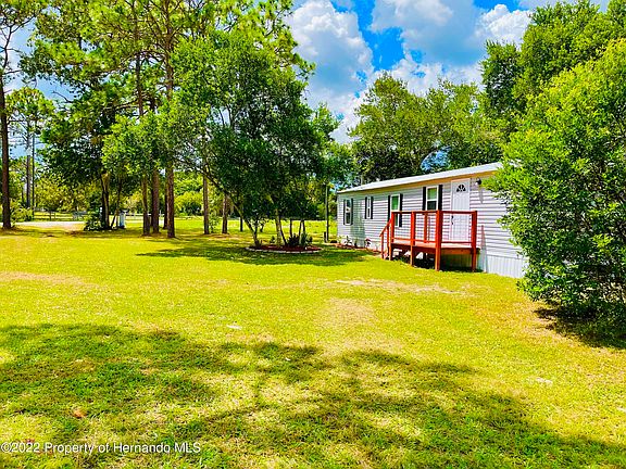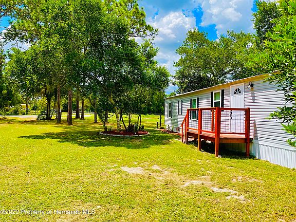 Completely Remodeled 2/1 mobile home on a beautiful corner lot, measuring .96 of an acre! This newly renovated home features new kitchen cabinets, upgraded stainless steel appliances, butcher block countertops, new vinyl laminate flooring throughout, updated A/C, new metal roof, and a nicely manicured yard. Located in a quiet, rural setting, with country charm, but close to all amenities and minutes away from the Suncoast Pkwy. This property has plenty of space for animals, pool, and/or recreational toys. This one will go quick!