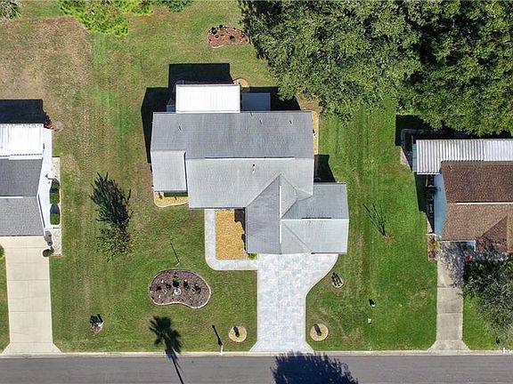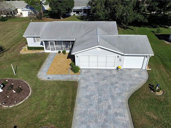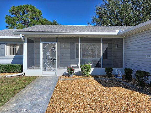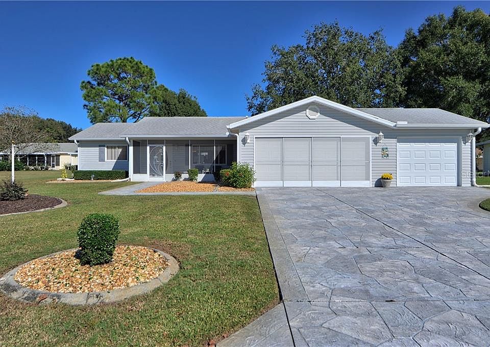 Come see this Chestnut model in Spruce Creek South with an added 3rd-Bay CAR/GOLF-CART GARAGE (21Ft X 12FT) and ENCLOSED FLORIDA ROOM - 20Ft X 10 FT. 2 Bedrooms, 2 Baths, Inside Laundry room, and 2-Car Garage (screen doors) with OPEN CONCEPT LIVING! This beautiful home has a custom painted driveway and walkway, ROCK mulch, exterior Coach Lights, Keyless Entry pad to Golf Cart Garage, 3 Attic Vents, Covered-Screened Front Porch with Tile flooring, Irrigation System and Gutters & Downspouts! The custom front door has a Designer Leaded-Glass Oval Insert. Once inside the home you have TILE in the Entry Foyer, Living Room, Dining Room, Kitchen, Hall, Laundry Room and Florida room, with BRAND NEW Carpeting in the Bedrooms. Vaulted Ceilings & Ceiling Fans greet you along with the Openness of the home which is GREAT for Entertaining! Pull up a seat at the Kitchen Island with its Breakfast Bar overhang. The Kitchen has tiled back-splash, farm sink, window to rear Patio, and over-cabinet lighting. There is a WHOLE HOUSE WATER FILTRATION SYSTEM, newer window unit A/C in the Florida room, Large Walk-In closets in the bedrooms, Hall Linen Closet, and over-head cabinets in the laundry room. The added GOLF-CART/STORAGE GARAGE is amazing with its painted floor, motorized door , and pre-wired for you to add a mini-duo-split unit if you desire.This house is on septic, washer & dryer do not convey, no ice/no water on Fridge. Spruce Creek South has access via golf-cart (across 441) to Walmart, and more shopping!