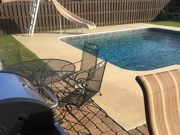 BREATHTAKING! From the soaring ceilings, dark hardwoods and finishes the spaciousness, this home is GORGEOUS!! Living areas have hardwoods,living room has fireplace and the kitchen has recessed lighting and plenty of cabinet and counter space! Isolated master bedroom with beautiful trey ceilings, crown molding and a large glamour bath.Upstairs features a large bonus room plus a 4th bedroom and additional full bath. Covered back porch overlooking L-shaped inground salt water pool with slide. Large lounging area with beautiful landscaping.