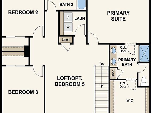 TWO-STORY ; Covered Porch ; 2 Bay Garage with Entry ; Foyer ; Study ; Main Floor Bedroom 5 with Shared Full Bath ; Open Kitchen with Island, Pantry, and Yard Access ; Dining Area ; Great Room ; Upstairs Laundry Room ; Primary Suite with En-suite Bath and Large Walk-in Closet ; 3 Bedrooms with Full Bath ; Standard Unfinished Basement