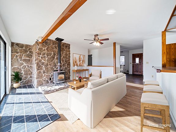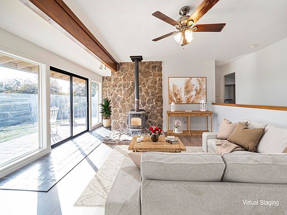 Don't miss this AMAZING opportunity to live in the county on nearly 6 acres with BEAUTIFUL views. This 2 bedroom 2 bath home features a bright kitchen that opens up to a COZY living room, plus an office or optional 3rd Bedroom! Snuggle up on the couch in front of the fire and enjoy the sunsets from the large view windows and slider door leading to the back patio. The LARGE detached garage/shop has plenty of room for cars and toys. The property has enough room for all of your gardening needs and comes with several garden boxes and chicken coop. Plenty of room for your kids and animals to play, and AMPLE room for RV/boat parking! MUST SEE!