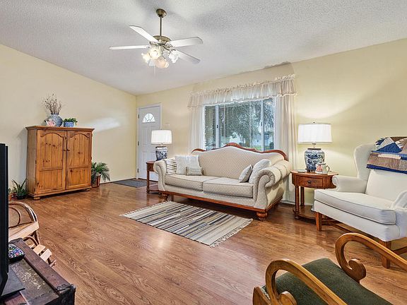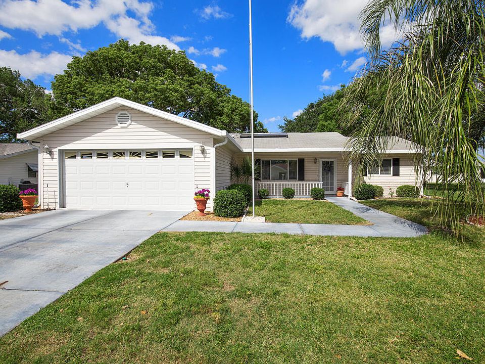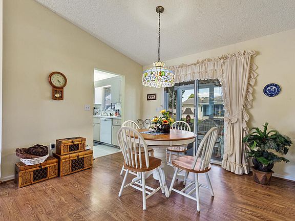 55+ Gated Golf Course Community just north of The Villages. This 1,296 sf CHESTNUT feels like home the minute you enter the front door to the open living, dining area which leads to the 150 sf lanai under roof, heat and air, with glass sliding windows, (not included in sq ft!) Plenty of room to spread out or entertain! Volume ceilings enhance the spacious feeling all around. The kitchen offers an additional eating space and has access to living room plus dining room, without exposing kitchen to entire living area. Clean, well maintained and move in ready! There is a Solar Hot Water Heater inspected Jan 2018, perfect working order! Roof 2004 HVAC 2012. Seller is motivated and inviting offers!