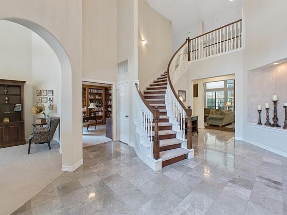 Stunning home in Willowick Forest sits on TWO lots. Instantly fall for this five bedroom home with meticulously maintained landscaping. This superb home offers grand living and entertaining spaces with beautiful architectural detailing. Rich dark engineered hardwoods highlight the Family room that features a glowing fireplace, has built in speakers and is open to kitchen. Chef inspired kitchen has gas cook-top, convection ovens and cabinets galore! Extra large primary bedroom has extra space for seating and separate door to outside pool. Master bath includes his and hers walk in closets, dual sinks and separate tub and shower. Upstairs find 4 roomy bedrooms all with walk in closets, one jack and jill bath, game room and separate guest suite with separate stair case that leads to garage. Home has an automatic iron gate and 3-Bay Garage with porte-cochere. Start creating memories in your new breath-taking backyard with view of the pool and waterfall in a park like setting.