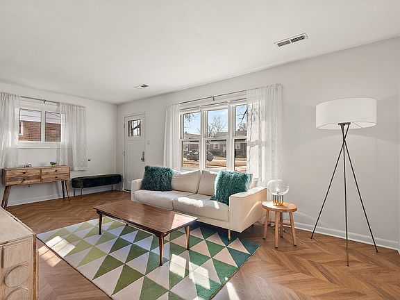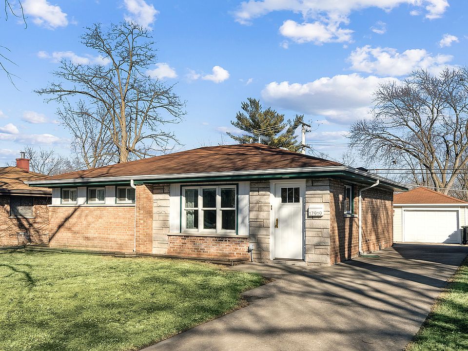Fall in Love with This Beautifully Updated Ranch! Welcome to this impeccably rehabbed and move-in ready 2-bedroom, 1-bath ranch, where charm, comfort, and modern style come together seamlessly. From the moment you arrive, you'll appreciate the thoughtful details, from the newer front door and fresh neutral paint to the stunning herringbone-pattern vinyl flooring that flows throughout the main living areas. Step into a bright, sunlit living room, where large windows fill the space with natural light, creating a warm and inviting atmosphere. Adjacent to the living room, the formal dining room is perfect for holiday gatherings, or hosting guests. The galley-style kitchen is both stylish and efficient, and a smart design that makes cooking and cleanup a breeze. The heart of the home is the spacious family room, ideal for relaxing or entertaining. French doors open to reveal beautiful views of the backyard, offering a versatile space for cozy movie nights or lively get-togethers. Step outside to a generously sized backyard, perfect for gardening, a play area, or simply enjoying peaceful evenings outdoors. Enjoy the convenience of a main-level laundry room, thoughtfully positioned for everyday ease.The detached 2-car garage provides plenty of room for parking and extra storage. Located on a quiet street just blocks from the park and library, and with quick access to the expressway, this home offers both tranquility and convenience. This property may qualify for up to $10,000 Homebuyer Grant that can be used to reduce the cost of your mortgage.