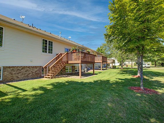 One level living at its finest with this large townhouse! You must see it to believe how spacious it is. Home has been updated with quality features and screams luxury living. Five skylights, tiled flooring, wood flooring, granite countertops, stunning backsplash, epoxy flooring, jacuzzi tub and more! New garage auto reverse and patio updated too! His and her sinks. Plus sunroom and deck also updated. Plenty of storage space in garage and lower level! Close to highway, schools, trails, restaurants and shops!