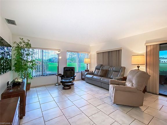 Wow, this quiet condo is astonishing at this value; ground floor directly on the golf course and with a huge setback it gives you a peaceful and gorgeous long sunset view. Previous owners have also included their golf cart and golf cart storage for you. This condo has an updated kitchen with newer appliances, new roof, newer A/C, 19 ft long tiled lanai and located in South Ft Myers which is a convenient and perfect location. Furniture is included, just bring your personal touches. This Seven Lakes Community boasts an updated 4-million-dollar improved golf course, included in your association. This luxurious home in a gated 55+ community is located in SW Florida's premiere vacation destination: world- renowned beaches, restaurants, entertainment, & shopping all just minutes away but why leave this beautiful community with clubhouse, fitness, pools, hobby rooms, tennis, pickleball and more. Add the low cost per sq. ft., low taxes, low golf & cable included association fees; qualifies this for a rating of "Best Value Buy". Back on the market...financing issues.