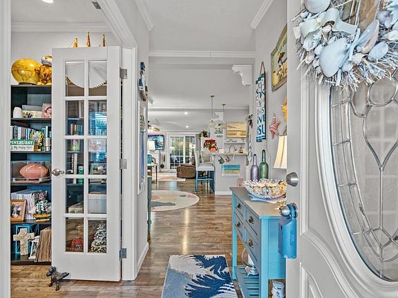 Welcome home to this 3 bedroom, 2 bathroom 2019 Augusta Model- triple wide home, located in the 55+ community of Lakeside Crossing. Featuring an open floor plan of the main living areas with engineered wide plank flooring & crown molding throughout, this home has been meticulously maintained, offers a transferrable warranty, and is truly ready for you to move in! The kitchen includes all white cabinetry with stainless steel appliances, a work island with granite countertop, and the perfect dining area, with a large pantry for extra storage. Each bedroom offers a ceiling fan, plenty of closet space, and easy access to a bathroom, while the 3rd bedroom also includes an accent wall. The master suite offers double sink vanities in the private master bath, and an upgraded tile walk in shower! The 500 sq ft garage adds plenty of storage with overhead racks, an epoxy floor, pull down screens, and adds extra room for parking. Enjoy afternoons on your large screened in porch or grilling on the extended patio, all with the privacy of a wooded view. Lakeside Crossing is a gated community, offering great amenities including indoor and outdoor pools, hot tub, tennis courts, shuffle board, billiards, library, exercise room, community activities, access to the boat docks, and more! Make this your forever home, schedule your showing today!