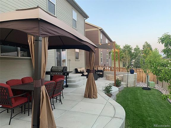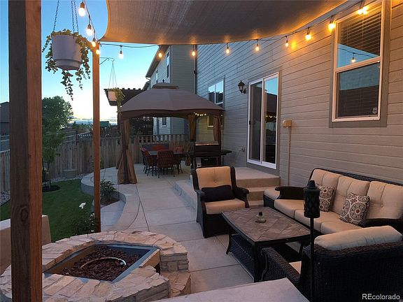 Welcome home to this beautifully kept 4 bedroom, 3 bathroom house in Silver Peaks. Truly, this home is better than new. With over 2400 square feet, including a loft, huge master suite, and huge master walk-in closet, space is not going to be an issue here. Open concept living on the main floor, provides an all-inclusive feel immediately upon entering. In addition to that main attraction, the outside living space will please anyone looking to enjoy our gorgeous Colorado summer. This custom concrete patio, awning, and built in gas fire pit are a delight for hosting outdoor BBQ's or just relaxing in the evening after a long day. There is a nearby park, and easy access to I-76, restaurants, shopping, and medical facilities. Showings being on Friday the 29th of May. This property will go under contract quickly, and it is priced to sell, so don't wait to schedule your private showing right away!
