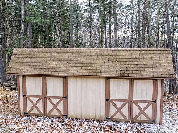 This 4 bedroom home is not your typical split entry! Open view of main and lower levels upon entering. Lower level features 27x18 game room, french doors leading to large covered concrete porch, half bath, 4th bedroom, tons of storage and spacious laundry area. Living room dining room combination measures 28x13 and features a cozy brick wood burning fireplace. Ample cabinetry in kitchen accented by neutral colored Corian countertop and recessed lighting includes a center island with gas stove, and seating for family and friends. Other kitchen features include wall oven, pantry and ceramic flooring. Spacious rear yard backs to wooded area and has 2 levels, a huge Amish built shed and an extra shed for plenty of storage. Roof 2011, newer windows and insulation. Large level driveway with plenty of parking. 1 year home warranty for buyer!! HARDWOOD FLOORING UNDER CARPETING