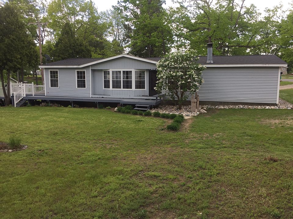 One of the best lots on the lake a neighbor boasted! Oversized lot with slight grade to the water, 60 feet of sandy shores, and green luscious grass sure does allow for easy, comfortable trips back up to the house/deck to refill your drink and back down to the dock (included) to watch the sunrise. Spacious multi-level deck for a lakeside BBQ and entertaining. Adequate parking for all your guest to visit. Well maintained boat launch is nearby for all your water toys. Rainy day? No problem! Come inside, plenty of space for the entire extended family. Warm up next to the natural fireplace in the master bedroom, gather around the bar, spread out in this open concept ranch style home with eat in kitchen, dining and spacious living area. Enjoy the views out the oversized door wall facing the lake. No need to track sand through the entire house when there is a bathroom conveniently located right inside the entrance off the deck. Pratt Lake is an All-Sports lake approximately 180 acres and 28 feet deep. Pratt lake is well know for its' crystal clear water, sandy bottom, and the famous sand bar running down the center of the lake for you to shore your boat, wade around and socialize with all your friends and neighbors. No mandatory Association fees. Bar top is a beautiful thick live edge and well finished and includes a second full sized. Natural Gas, Cable TV/Internet, paved road, brand new appliances (refrigerator, stove, dishwasher, washer, and dryer) .....What more could you ask for? Cheers and welcome to Pratt Lake. )Swimming platform with slide and paddle boat is negotiable along with the beachy decor.)
