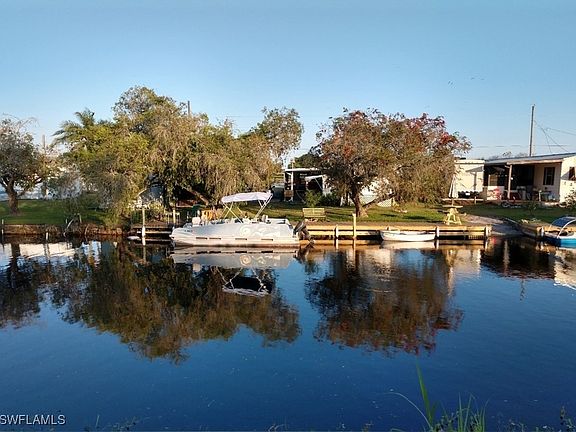 FISHERMAN'S DREAM! Riverfront with home for only $190,000! Seller says "Bring me an Offer" This property fronts on the Caloosahachee River and on a canal in the back yard with boat ramp and dock. The 2/1 well built, well maintained mobile home has an addition with murphy bed and 1/2 bath. The back patio is under roof and houses the solar water heater, solar panel equipment and workshop filled with tools, in addition to the hot tub. There is currently an $800 credit towards electric expense due to the solar panels being so efficient. The shady back yard includes a boat ramp, dock, and fire pit, everything you need. Call today for your appointment! Seller wEill finance up to $100,000 at 3.5% interest for 10 years.