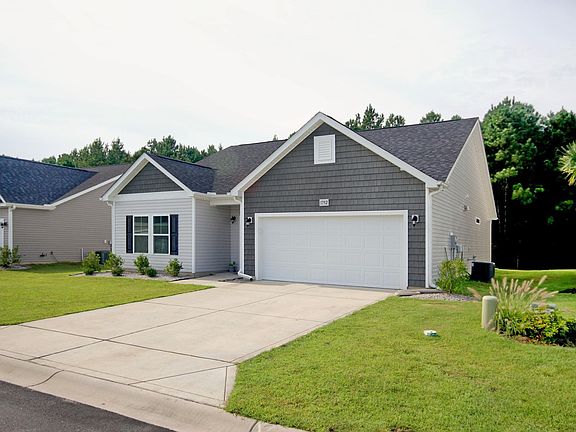 Beautiful, like new home with a flex space that is currently a formal dining room but can easily be turned into a third bedroom or office. The three year old home sits on a private lot in the beautiful community of Lakes at Plantation Pines. The backyard is spacious and backs up to a wooded area. Inside you will find a large open concept with vaulted ceilings and a split bedroom floorplan. The kitchen offers stainless steel appliances, a kitchen island and granite countertops. There is laminate flooring throughout the main living spaces, kitchen and dining room, carpet in the two bedrooms and tile in the wet areas. There are blinds throughout and a new slop sink in the laundry room. Landscaping has been upgraded with a sprinkler system in the front and back yard and beautiful rock in the front garden beds. The home features an in wall TAEXX system and termite bait station. Don't miss out on this opportunity and call for a showing today! Square footage is approximate and not guaranteed. Buyers responsible for verification.