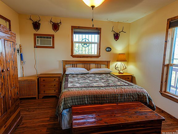 Welcome to Whispering Rock Ranch your turnkey hunting retreat in Rocksprings, Texas. Spanning +/-100 acres this property is fully equipped for serious outdoor enthusiasts and hunters. The ranch includes a 2-bedroom 1-bathroom cabin with cedar accents, wood-burning stove, and custom furnishings throughout. The full kitchen, walk-in closet, and covered porch offer both comfort and function. The cabin also features a rainwater collection system, septic, and full sized appliances. Most furnishings in the cabin will stay with the property. Outside, youll find an impressive setup: 3 elevated blinds, 7 feeders (including stand and fill, protein, and alfalfa), water troughs, a game cleaning station, large meat chiller, firepit, storage container, Kawasaki Mule, and more. A variety of wildlife have been seen on the property, including elk, axis, hogs, turkeys, aoudad, and more. The property is under wild-life management and part of a property owners association that provides road maintenance and water access for wildlife. This is a rare opportunity to own a fully loaded, ready-to-enjoy Texas hunting ranch.