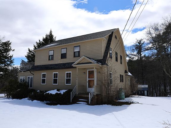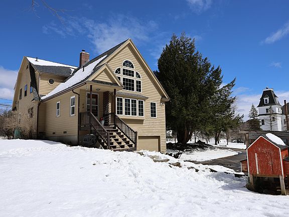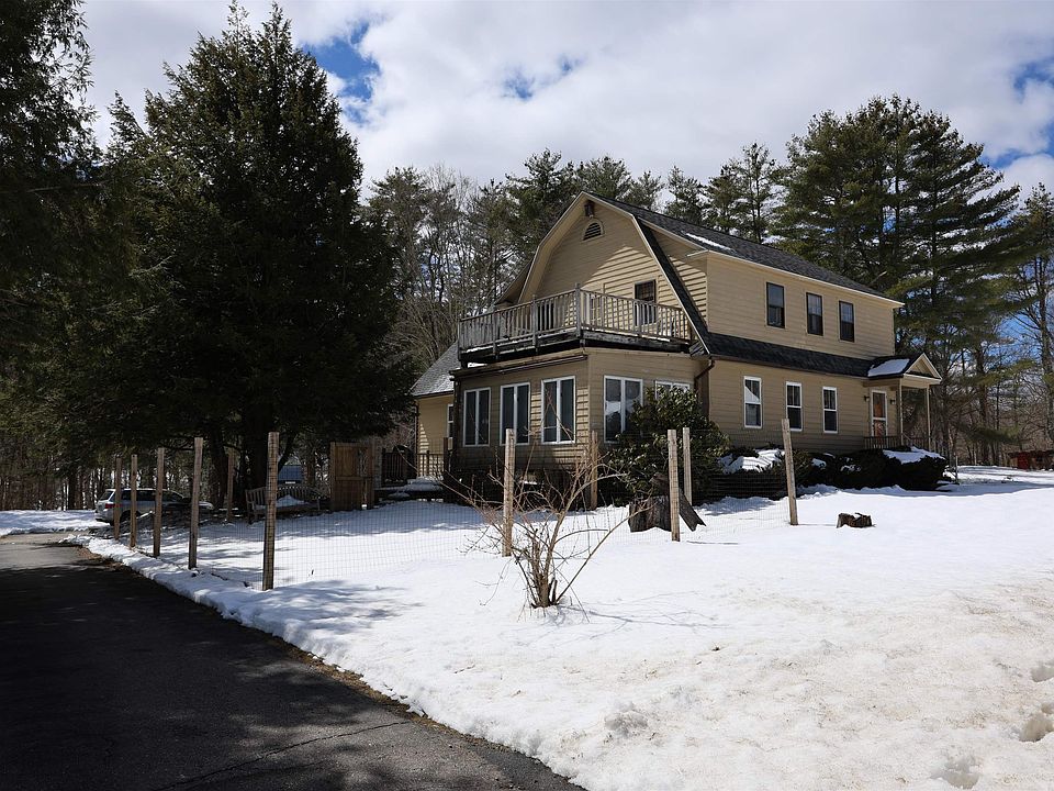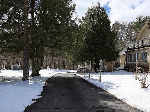 Beautiful Two Story Gambrel located in the quaint village district of Gilmanton Iron Works. The lovely home offers a large one and half acre village lot with apple trees, pear tree and raspberry bushes and is within walking distance to the Iron Works store. Close proximity to Crystal Lake, trails and hiking and within 25 minutes to Gunstock Mountain Resort. Enjoy the fabulous spacious sized rooms perfect for entertaining! Just off the foyer is a stunning great room with natural sunlight showcasing cathedral pine ceiling, hearth with pellet stove and loft. Hardwood flooring throughout. Spacious eat-in-kitchen with built-in hutch and walk-in pantry, formal dining room, 3-season enclosed porch with wide-pine flooring and roomy front living room with bookshelves. Second floor features walk-in closet off hall, spacious full bath, primary bedroom with French doors to loft overlooking the great room. Two additional bedrooms with ample closet space and door leading to upper deck. 10x12 barn/outbuilding added in 2021 swanks a finished unheated office with loft with a view of the Suncook River. Showings begin on Saturday, April 13th between 10-1 by appointment.