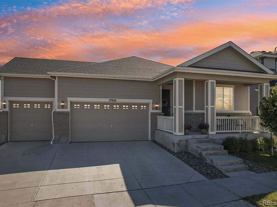 Rarely available in the sought-after Anthology community, this "ranch with a basement" is a must-see before it's gone! Thoughtfully located and beautifully appointed, this home boasts over 1,900 finished square feet, with 3 bedrooms and 2 bathrooms, offering a luxurious yet easy lifestyle. The charming covered front porch is the perfect spot to start or end your day. Step inside to soaring ceilings, tall doors, and continuous luxury plank flooring throughout much of the main level. Two secondary bedrooms and a full bath are positioned at the front of the house, ensuring privacy from the primary suite and main living spaces. The gourmet kitchen is truly a showstopper. Featuring upgraded 42" cabinets, stainless steel appliances, a double-door pantry, and a spacious quartz countertop island, it's a cook’s dream. The adjacent dining area comfortably accommodates a table for 6-8, which could be expanded for special occasions. Whether you're in the kitchen, dining room, or living room, you'll appreciate the priceless open-space views behind the property. Plus, the area between the home and the fenceline offers potential for further customization. The serene primary suite enjoys gentle southern exposure and features an ensuite 5-piece bath, along with large linen and walk-in closets. Conveniently, the laundry room is located just outside the primary suite for added ease. And speaking of convenience, the 3-car garage and the 1,900 square foot unfinished basement offer endless possibilities for storage or future customization. This home was also pre-wired for "smart" technology, easily activated to suit your needs. Beyond the property itself, the Anthology community offers miles of trails, a park, playground, Community Center, pool, and is just moments from all things Parker. Nestled in a peaceful pocket yet centrally located, 17920 E Emilia Drive offers the home and lifestyle you’ve been waiting for!