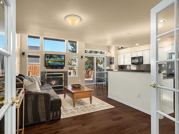 Welcome to your future home in the neighborhood of David's Fox Run! This 4-bedroom, 2.5-bathroom residence offers a bright and airy living room with large windows that let in tons of natural light. The spacious kitchen includes a gas fireplace and double doors for more intimate dinners and gatherings. Enjoy the view of the open dining and entertaining area from your kitchen island, which includes a dishwasher and double sink. This layout creates a seamless connection between the kitchen and the living spaces. The main floor also includes a versatile room that can be used as a bedroom or office, along with a laundry room and a half bath. The second floor boasts a spacious primary suite complete with a generous walk-in closet, a walk in shower and a soaking tub. Two additional bedrooms and a full bathroom complete the upper floor. The fully fenced backyard features a large deck with a retractable awning, and ample room for sitting and relaxing in the yard. This space is perfect for outdoor games or hobbies. Conveniently located just 0.5 miles from Hazelbrook Middle School, 0.9 miles from Jurgens Park and Dog Park, and 1.5 miles from Tualatin Country Club. Recent updates include new hardwood flooring on the main floor (2017), a new roof (2021), newer AC (2019), and newer water heater and furnace. Don’t miss out on this opportunity!